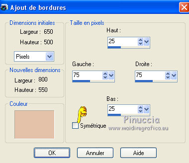 7. Image>Ajouter des bordures, symétrique décoché, couleur d'avant plan.
