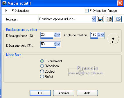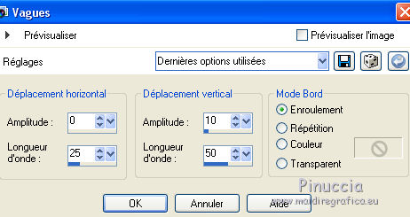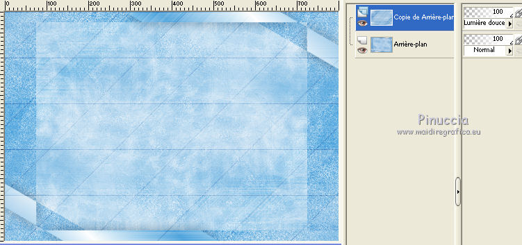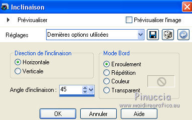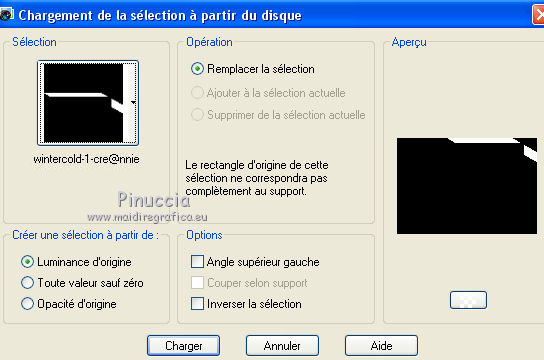 Ce tutoriel a été créé avec CorelX6 et traduit avec CorelX12, mais il peut également être exécuté avec les autres versions. Suivant la version utilisée, vous pouvez obtenir des résultats différents. Depuis la version X4, la fonction Image>Miroir a été remplacée par Image>Renverser horizontalement, et Image>Renverser avec Image>Renverser verticalemen. Dans les versions X5 et X6, les fonctions ont été améliorées par la mise à disposition du menu Objets. Avec la nouvelle version X7, nous avons encore Image>Miroir et Image>Renverser/Retourner, mais avec nouvelles différences. Voir les détails à ce sujet ici Certaines dénominations ont changées entre les versions de PSP. Les plus frequentes dénominations utilisées: ![]() Traduction en italien ici Vos versions ici Nécessaire pour réaliser ce tutoriel: Matériel ici Merci pour le tube Min@ Modules Externes: consulter, si nécessaire, ma section des filtres ici Filters Unlimited 2.0 ici Toadies - What are you, Weaver ici Redfield - Fractalius ici Alien Skin Eye Candy 5 Nature - Icicles ici Alien Skin Eye Candy 5 Impact - Perspective Shadow ici Filtres Toadies peuvent être utilisés seuls ou importés dans Filters Unlimited. voir comment le faire ici). Si un filtre est fourni avec cette icône, Animation Shop ici ![]() en fonction des couleurs utilisées, vous pouvez changer le mode mélange et l'opacité des calques. Dans les plus récentes versions de PSP, vous ne trouvez pas le dégradé d'avant plan/arrière plan ou Corel_06_029. Vous pouvez utiliser le dégradé des versions antérieures. Ici le dossier Dégradés de CorelX. Placer les presets et Alien Skin Eye Candy 5 Nature>Settings>Icicles. En cliquant sur le preset une ou deux fois (selon vos réglages) automatiquement il se placera directement dans le dossier Settings de Alien Skin Eye Candy. pourquoi un ou deux clic voir ici Placer les sélections dans le dossier Sélections. 1. Ouvrir une nouvelle image transparente 650 x 500 pixels. 2. Placer en avant plan la couleur claire #fdffff, et en arrière plan la couleur foncée #4e93ce. ![]() 3. Sélections>Sélectionner tout. 4. Ouvrir l'image "bevroren tak", Édition>Copier. Revenir sur votre travail et Édition>Coller dans la sélection. Sélections>Désélectionner tout. 5. Effets>Effets d'image>Mosaïque sans jointures, par défaut. ![]() 6. Effets>Modules Externes>Redfield - Fractalius, sélectionner le preset Sketch B W 05 et ok. ![]() si vous utilisez une version plus récente, le preset est devenu Sketch 05. ![]() 7. Calques>Nouveau calque raster. Remplir avec la couleur d'arrière plan.Placer le calque en mode Écran. ![]() 8. Calques>Fusionner>Fusionner le calque de dessous. 9. Effets>Modules Externes>Toadies - What are you. ![]() 10. Image>Ajouter des bordures, symétrique décoché, couleur d'arrière plan. ![]() 11. Effets>Effets de réflexion>Miroir rotatif. ![]() 12. Calques>Dupliquer. Image>Miroir. Image>Renverser. 13. Placer le calque en mode Fondu et réduire l'opacité à 50%. ![]() 14. Calques>Fusionner>Fusionner le calque de dessous. 15. Sélections>Charger/Enregistrer une sélection>Charger à partir du disque. Chercher et charger la sélection wintercold-1-cre@nnie. ![]() 16. Préparer en avant plan un dégradé de premier plan/arrière plan, style Linéaire. ![]() 17. Remplir la sélection du dégradé.Sélections>Transformer la sélection en calque. Sélections>Désélectionner tout. 18. Calques>Dupliquer. Image>Miroir. Image>Renverser. Calques>Fusionner>Fusionner le calque de dessous. 19. Effets>Effets 3D>Ombre portée, couleur noire. ![]() 20. Calques>Fusionner>Fusionner le calque de dessous. 21. Calques>Dupliquer. Effets>Modules Externes>Toadies - Weaver. ![]() 22. Effets>Effets géométriques>Inclinaison. ![]() Placer le calque en mode Lumière douce. ![]() 23. Sélections>Charger/Enregistrer une sélection>Charger à partir du disque. Charger à nouveau la sélection wintercold-1-cre@nnie. ![]() Presser CANC sur le clavier ![]() 24. Sélections>Modifier la sélection, et la zone sélectionnée deviendra rouge ![]() 25. Image>Miroir. Image>Renverser. ![]() 26. À nouveau Sélections>Modifier la sélection, et la zone rouge sera remplacée par la nouvelle sélection. ![]() Presser CANC sur le clavier. 27. Calques>Fusionner>Fusionner le calque de dessous. 28. Calques>Nouveau calque raster. 29. Activer l'outil Sélection ![]() (peu importe le type de sélection, parce que avec la sélection personnalisée vous obtenez toujours un rectangle), cliquer sur Sélection personnalisée ![]() et setter ces paramètres. ![]() 30. Édition>Coller dans la sélection (l'image "bevroren tak" est toujours en mémoire). Placer le calque en mode Lumière douce. ![]() 31. Effets>Effets 3D>Ombre portée, couleur noire. ![]() Sélections>Désélectionner tout. 32. Image>Ajouter des bordures, symétrique décoché, couleur d'avant plan. ![]() 33. Effets>Effets d'image>Mosaïque sans jointures. ![]() 34. Calques>Nouveau calque raster. Sélections>Charger/Enregistrer une sélection>Charger à partir du disque. Chercher et charger la sélection wintercold-2-cre@nnie. ![]() 35. Effets>Effets 3D>Ombre portée, couleur noire. ![]() Sélections>Désélectionner tout. 36. Effets>Effets de distorsion>Vagues. ![]() 37. Effets>Effets d'image>Décalage. ![]() 38. Calques>Dupliquer. Image>Miroir. Image>Renverser. Calques>Fusionner>Fusionner le calque de dessous. 39. Vous positionner sur le calque du bas de la pile. Activer l'outil Baguette magique ![]() ![]() et cliquer sur les bords en haut et en bas pour les sélectionner. ![]() 40. Remplir la sélection du dégradé.Sélections>Transformer la sélection en calque. 41. Effets>Modules Externes>Alien Skin Eye Candy 5 Nature - Icicles. Sélectionner le preset wintercold-cre@nnie et ok. Ci-dessous les règlages en cas de problèmes avec le preset. ![]() Sélections>Désélectionner tout. 42. Ouvrir le tube tekst-wintercold, Édition>Copier. Revenir sur votre travail et 