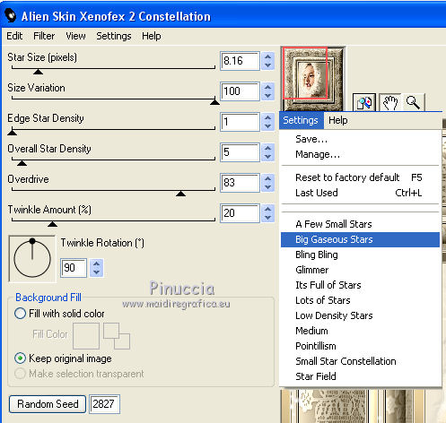 24. Effetti>Plugins>Alien Skin Xenofex 2 - Constellation - clicca su Random Seed e ok.