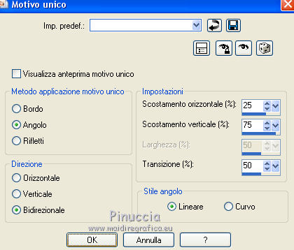 32. Effetti>Effetti di immagine>Motivo unico, con i settaggi standard.