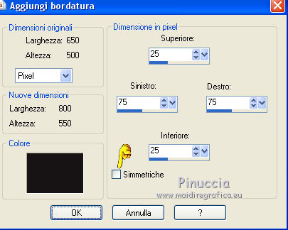 Immagine>Aggiungi bordatura, simmetriche non selezionato, con i settaggi precedenti.