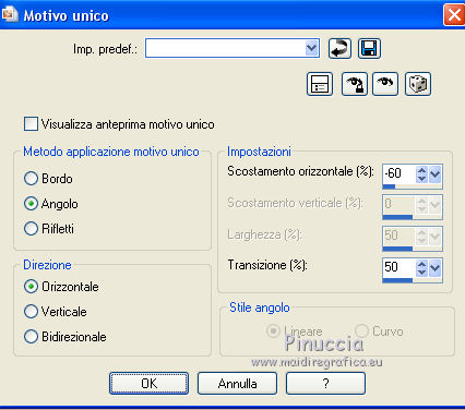 5. Effetti>Effetti di immagine>Motivo unico, con i settaggi standard.