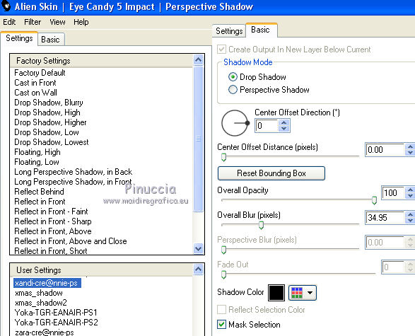 Effetti>Plugins>Alien Skin Eye Candy 5 Impact - Perspective Shadow, con i settaggi precedenti.