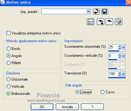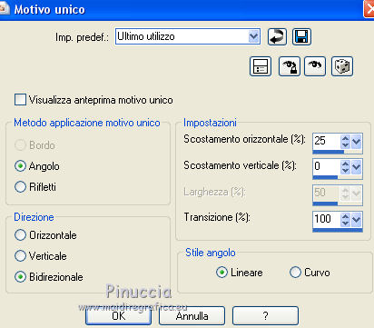 5. Effetti>Effetti di immagine>Motivo unico, con i settaggi standard.