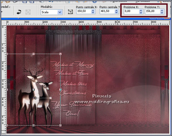 Imposta Posizione X: 0,00 e Posizione Y: 156,00.