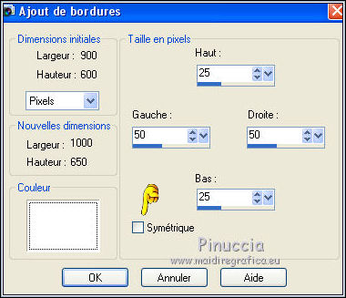 Image>Ajouter des bordures, symétrique décoché, couleur d'arrière plan.