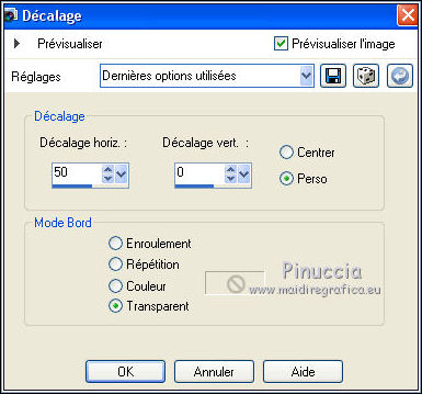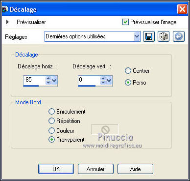 placer Position horiz.: 0,00 et Position vert.: 156,00.