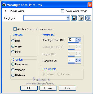 19. Effets>Effets d'image>Mosaïque sans jointures, par défaut.