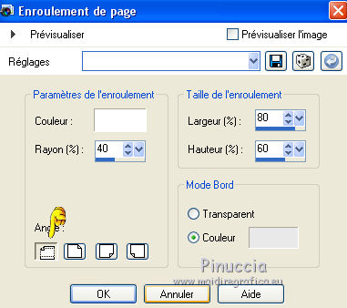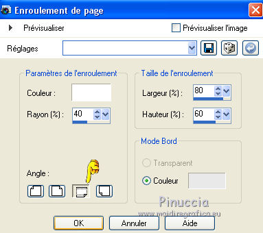 4. Répéter Effets>Effets d'image>Enroulement de page, comme précédemment, mais cliquer sur enroulement angle inférieur droite