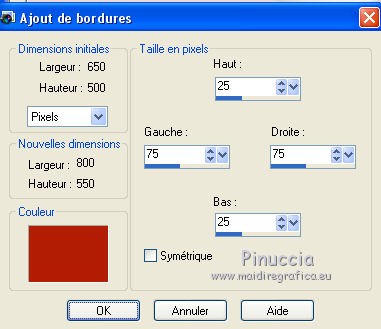 8. Image>Ajouter des bordures, symétrique décoché, couleur d'avant plan.