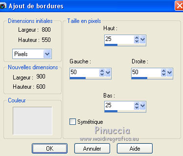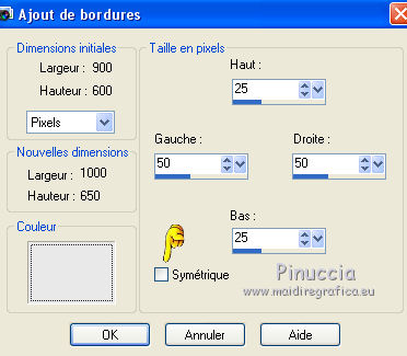 Image>Ajouter des bordures, symétrique décoché, couleur d'arrière plan.