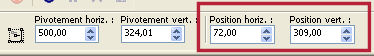 et placer Position horiz.: 72,00 et Position vert.: 309,00.