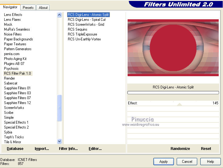 19. Effets>Modules Externes>Filters Unlimited 2.0 - RCS Filter Pak 1.0 - RCS Digi-lens-atomic split.