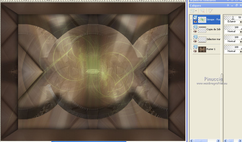 44. Placer le calque en mode Éclaircir et réduire l'opacité à 50%.
