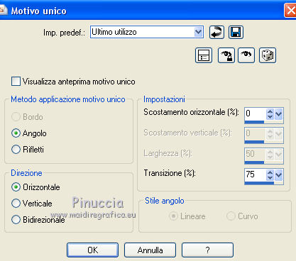 31. Effetti>Effetti di immagine>Motivo unico, con i settaggi standard.