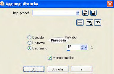 qui puoi trovare qualche risposta ai tuoi dubbi. Se l'argomento che ti interessa non è presente, ti prego di segnalarmelo. Per tradurre questo tutorial ho usato PSP X. Occorrente: Materiale qui Il tube è di Jet. Filtri: Greg's Factory Output II qui Flaming Pear - Flood qui Simple qui Imposta il colore di primo piano con #bcbdb8, e il colore di sfondo con #e4e3e1. Passa il colore di primo piano a Gradiente di primo piano/sfondo con i seguenti settaggi: ![]() 1. Apri "Selectie". Questa sarà la base del tuo lavoro. 2. Riempi la selezione con il gradiente.3. Regola>Aggiungi/Rimuovi disturbo>Aggiungi disturbo. ![]() 4. Effetti>Effetti 3D>Smusso a incasso: ![]() 5. Selezione>Deseleziona. 6. Attiva il livello Raster 1, e riempilo con il gradiente.7. Effetti>Plugins>Simple - Diamonds. 8. Effetti>Effetti di bordo>Aumenta. 9. Apri il tube della donna e vai a Modifica>Copia. Torna al tuo lavoro e vai a Modifica>Incolla come nuovo livello. Nella paletta dei livelli il tube della donna deve trovarsi al livello superiore. 10. Attiva il livello con l'anello. 11. Attiva lo strumento Selezione , rettangolo,e traccia un rettangolo come nell'esempio. ![]() 12. Modifica>Taglia. Modifica>Incolla come nuovo livello. Selezione>Deseleziona. 13. Nella paletta dei livelli sposta questo livello al livello superiore. 14. Posiziona il pezzo dell'anello sopra l'immagine della donna, come nell'esempio.![]() ![]() 15. Attiva il livello della donna. Effetti>Effetti 3D>sfalsa ombra: ![]() 16. Livelli>Unisci>Unisci visibile. 17. Attiva lo strumento Selezione , rettangolo,e traccia una piccola striscia a destra, come nell'esempio. ![]() 18. Livelli>Nuovo livello raster. Riempi il livello con il gradiente.Selezione>Deseleziona. 19. Effetti>Effetti di trama>Mosaico di vetro: ![]() 20. Effetti>Effetti di bordo>Aumenta. 21. Livelli>Duplica. Immagine>Rifletti. Livelli>Unisci>Unisci visibile. 22. Effetti>Plugins>Flaming Pear - Flood: ![]() 23. Livelli>Nuovo livello raster. Attiva lo strumento Ornamento e seleziona l'ornamento - standard in PSP - Gocce d'acqua.Clicca un paio di volte sotto le strisce laterali. 24. Abbassa l'opacità di questo livello al 50%. 25. Livelli>Unisci>Unisci tutto. 26. Immagine>Aggiungi bordatura, 1 pixel, simmetriche, con il colore di primo piano. Immagine>Aggiungi bordatura, 15 pixels, simmetriche, con il colore di sfondo. Seleziona questo bordo con la bacchetta magica ![]() 27. Effetti>Plugins>Greg's Factory Output II - Poolshadow: ![]() Selezione>Deseleziona. 28. Immagine>Aggiungi bordatura, 1 pixel, simmetriche, con il colore di primo piano. Seleziona tutto. Selezione>Modifica>Contrai - 17 pixels. 30. Effetti>Effetti 3D>Sfalsa ombra. ![]() Ripeti l'Effetto Sfalsa ombra, cambiando verticale e orizzontale con -3. Selezione>Deseleziona. L'immagine è finita. Se vuoi realizzare lo script ti servirà anche un'immagine di sfondo. Per realizzare lo script - che trovi qui puoi seguire i soliti preliminari descritti alla fine di questo tutorial, e sostituire le immagini, con le dovute variazioni, come spiegato nei precedenti tutorial. Se hai problemi o dubbi, o trovi un link non funzionante, o anche soltanto per un saluto, scrivimi. 20 Luglio 2009 |