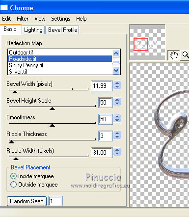 11. Effetti>Plugins>Eye Candy 4000 - Chrome, con i seguenti settaggi, senza modificare le altre linguette.