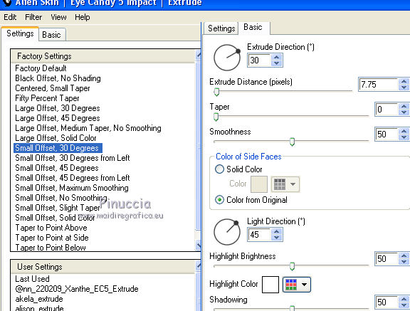 4. Effetti>Plugins>Alien Skin Eye Candy 5 Impact - Extrude.