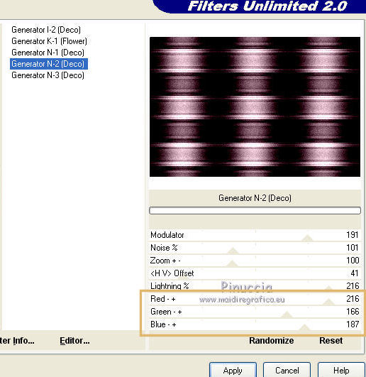 2. Effetti>Plugins>Filters Unlimited 2.0 - Krusty's FX vol. ll 2.0 - Generator N-2 déco.