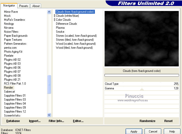 11. Effetti>Plugins>Filters Unlimited 2.0 - Render - Clouds(fore-/background color).