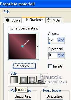 1. Passa il colore di primo piano a Gradiente, e seleziona il gradiente mcraspberry metallic, con i seguenti settaggi.