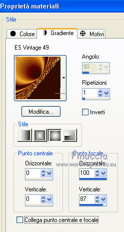 1. Passa il colore di primo piano a Gradiente e seleziona il gradiente ESVintage49 con i seguenti settaggi.
