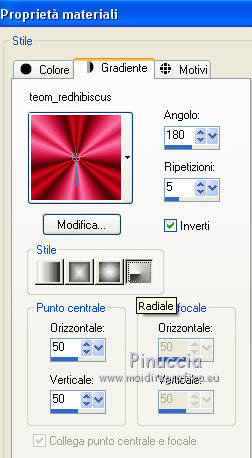 1. Passa il colore di primo piano a Gradiente, e seleziona il gradiente teom_redhibiscus, stile Radiale.