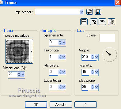 25. Effetti>Effetti di trama>Trama, seleziona la trama Tissage mosaique, con i seguenti settaggi.