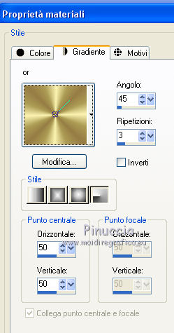 16. Passa nuovamente il colore di primo a Gradiente, e cambia i settaggi del gradiente oro.