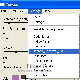 Metti il preset Joanne_Carnaval_Rio nella cartella del filtro Eye Candy 4000>Settings>Corona.