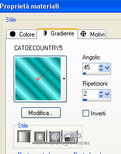 1. Passa il colore di primo piano a Gradiente, e seleziona il gradiente "Catoecountry5", con i seguenti settaggi.