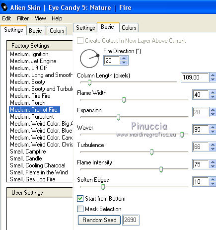 24. Effetti>Plugins>Alien Skin Eye Candy 5 Nature - Fire, clicca su Random Seed e ok.