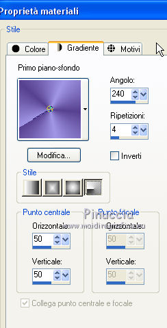 Passa il colore di primo piano a Gradiente di primo piano/sfondo, con i seguenti settaggi.