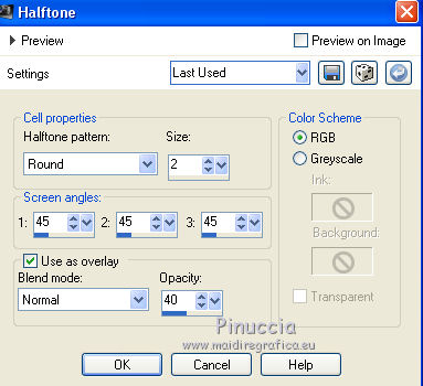 33. Effects>Artistic Effects>Halftone, same settings.
