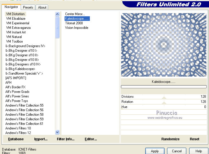 5. Effetti>Plugins>Filters Unlimited 2.0 - VM Distortion - Kaleidoscope.