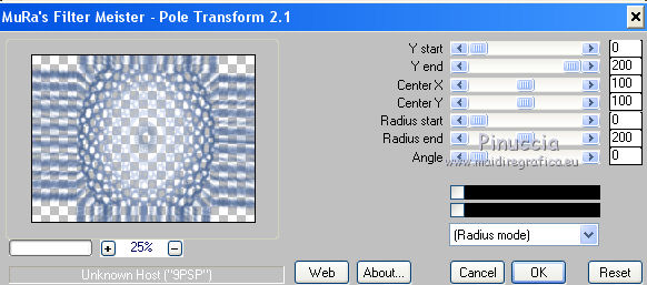 8. Effetti>Plugins>Mura's Meister - Pole Transform, con i settaggi standard.