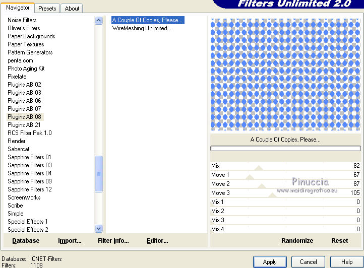2. Effetti>Plugins>Filters Unlimited 2.0 - Plugins AB 08 - A Couple of Copies,Please.