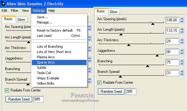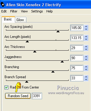 18. Effetti>Plugins>Alien Skin Xenofe 2 - Electrify - clicca una volta su Random Seed e ok.
