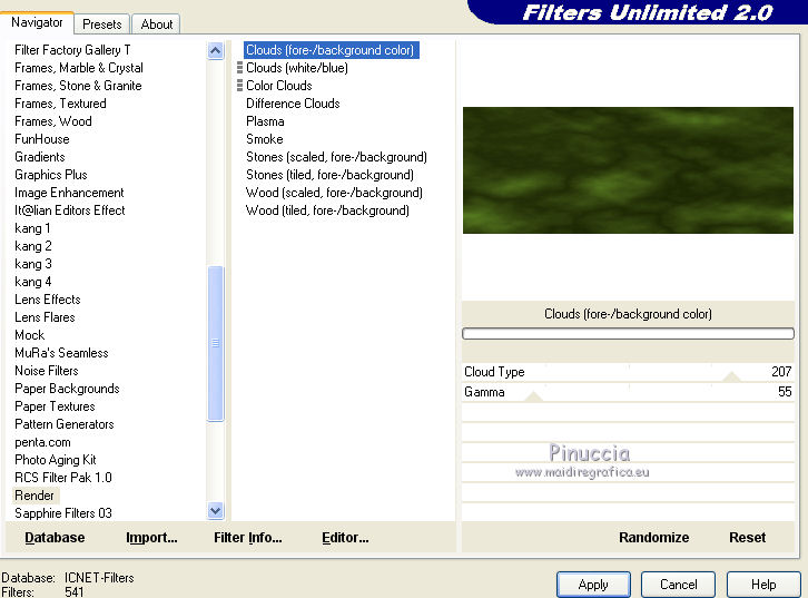 8. Effetti>Plugins>Filters Unlimited 2.0 - Render - Cloud (fore-/background color).