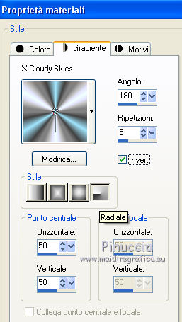 1. Passa il colore di primo piano a Gradiente, e seleziona il gradiente XCloudy Skies, stile Radiale.