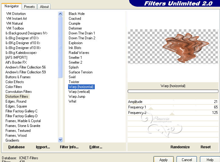 7. Effetti>Plugins>Filters Unlimited 2.0 - Distortion Filters - Warp (Horizontal)