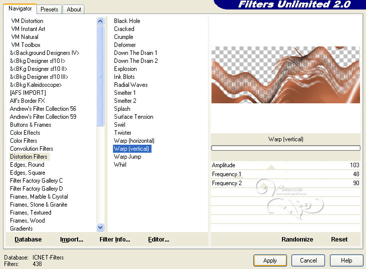 9. Effetti>Plugins>Filters Unlimited 2.0 - Distortion Filters - Warp (vertical).