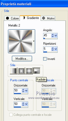 1. Passa il colore di primo piano a Gradiente, e seleziona il gradiente Metallic 2, stile Radiale.