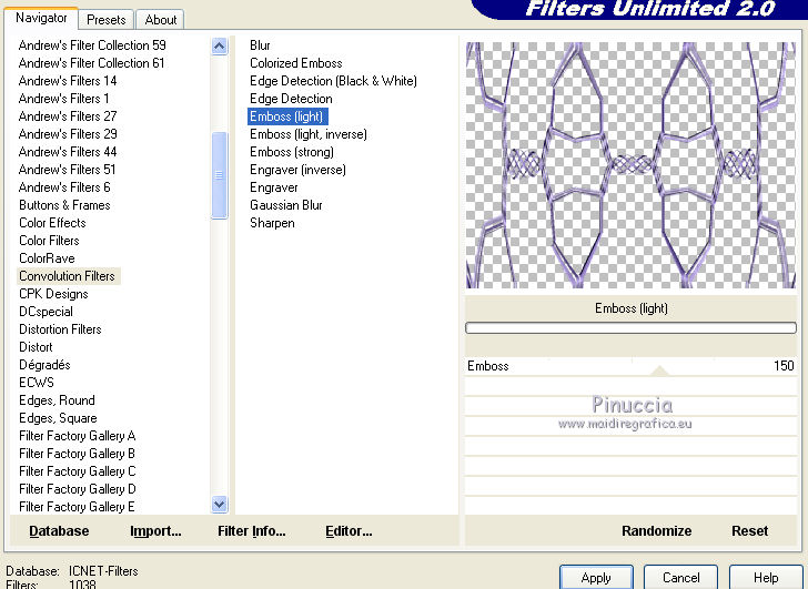 9. Effetti>Plugins>Filters Unlimited 2.0 - Convolution Filter - Emboss Light.