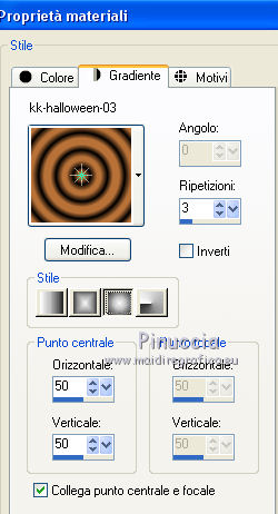 1. Passa il colore di primo piano a Gradiente e seleziona il gradiente kk-halloween-03, stile Sprazzo di luce.