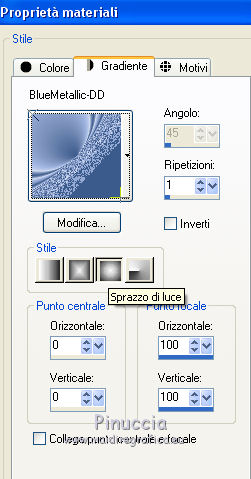 1. Passa il colore di primo piano a Gradiente, e seleziona il gradiente BlueMetallic-DD, stile Sprazzo di luce.