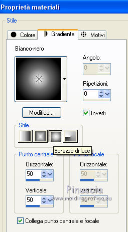 Imposta il colore di sfondo con il gradiente bianco-nero, stile Sprazzo di luce