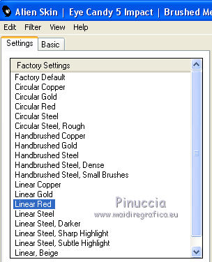 Effetti>Plugins>Alien Skin Eye Candy 5 Impact - Brushed Metal.
