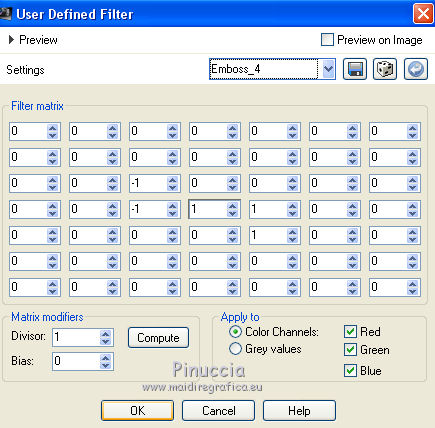 8. Effects>User Defined Filter - select the preset Emboss 4 and ok.