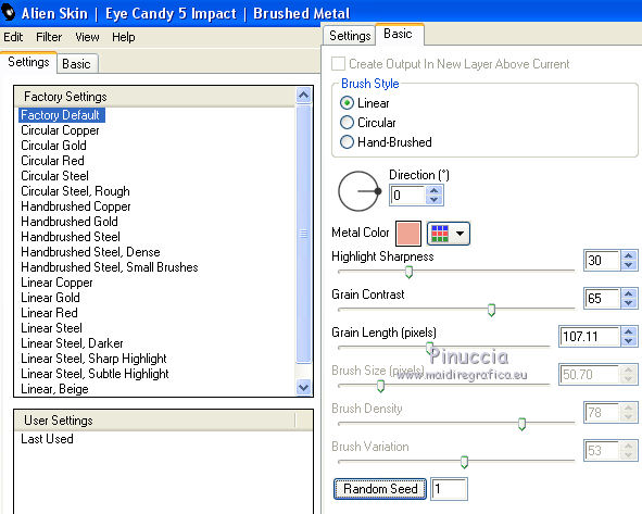 Effetti>Plugins>Alien Skin Eye Candy 5 Impact - Brushed Metal.